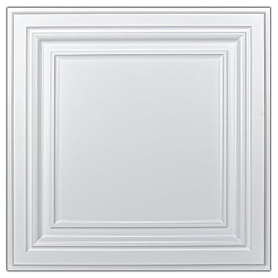 Create an accountThis drop-in ceiling tile set tops off your room with a vintage-inspired look. Crafted from PVC, these tiles are both water-resistant and fire-retardant, making them a practical choice for areas like kitchens, bathrooms, or basements. With a square edge style and molded details, they fit seamlessly into standard ceiling grids for a clean and modern finish. Each set includes 12 tiles, providing ample coverage for your space.