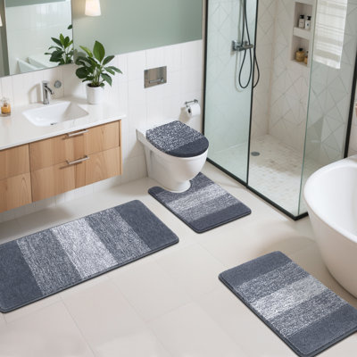 Create an accountThis bathroom rug set is made of high quality microfiber materials, which provides excellent comfort for your feet, meaning a softer, warmer feel. Luxury bathroom rugs features anti slip TPR backing and quality thick shag, which has the advantages of staying in place firmly and absorbing moisture. Please allow 0.5 inch data deviation due to manual measurement and the pictures may not reflect the actual color as different monitor display and light effect. Rugs are folded up when it's packed and might arrived with temporary creases but it will not affect use. Roll the rug in the opposite direction or steam it to remove carpet creases.