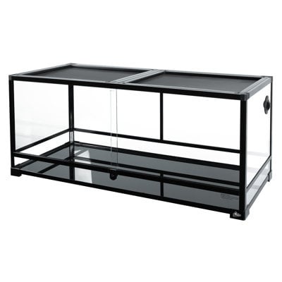 Create an accountGUZZLO Full Tempered Glass Reptile Terrariums offer a unique glass design that is easy to assemble and sturdy. The GUZZLO Reptile Terrariums feature a front opening glass door and double hinge locking top screen with feeding port. The bottom of the terrarium is water tight for creating a false bottom for planted tanks or an aquarium water feature. These terrariums also feature a top stackable design to make it easier to house multiple animals.