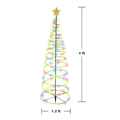 Create an accountFeaturing 100 solar-powered LED bulbs, this Christmas tree decoration illuminates your front yard or walkway for the holiday season. Made from metal, it has an open frame that's a coiled shape with all of the lights traveling along it for a festive feel. A classic star rests on top for a final finishing touch. It's resistant to rust and UV rays, so it stands up to the elements, including that coating of often-longed-for snow at the end of the year. A stake at the base helps keep this 4' tall tree rooted firmly in your lawn.