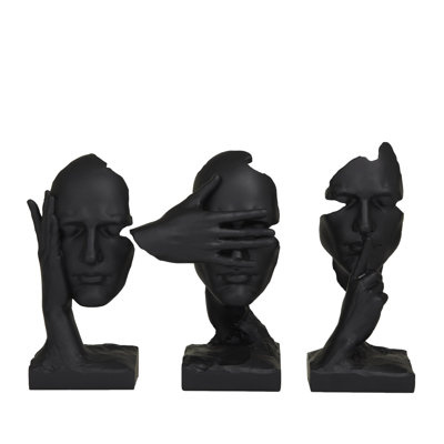 Create an accountCreate a balance surface space and added dimensions with this beautifully crafted sculpture. An artistic display to showcase your personality and enhance the look of any open table top space. Display this face set of 3 home decor statues on a bookshelf in the living room to add a contemporary flair. Designed with felt or rubber stoppers at the base that prevent scratching furniture and table tops, as well as sliding around. Please note that this item is for decorative use only. Polystone sculpture makes a great gift for any occasion. Suitable for indoor use only. This black colored polystone statue comes as a set of 3. Contemporary style.