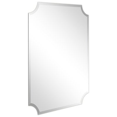 Create an accountThis Frameless Beveled Design Ovation Reign Rectangle Scalloped Bathroom/Vanity Mirror is just that: all mirrors - no frame! The shape of the glass is rectangular with scalloped corners. It is beveled enhancing its simplistic beauty and style. Its sleek style makes this mirror a favorite for bringing some flair to your decor. This simple yet stunning piece would be a great addition to any room. It is a perfect focal point for an entryway, bathroom, bedroom, or any room in your home. Hangers are affixed to the back of the mirror so it is ready to hang right out of the box in either a horizontal or vertical orientation.