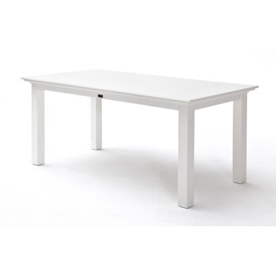 Create an accountEnjoy dinner with family and friends at this Lark Manor™ dining table. It's made from solid mahogany wood in a crisp white finish for a breezy look. Four post legs and crown molding give this table a farmhouse flair that we love. It measures 78.75" long, so you can effortlessly fit eight people for Sunday dinner or Tuesday night takeout. To assemble, all you have to do is attach the legs.