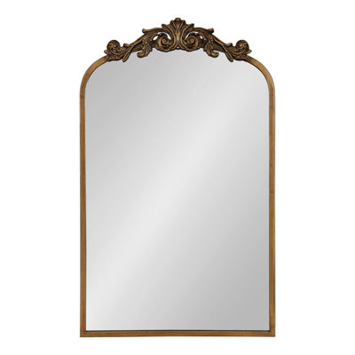 Create an accountThe Arendahl arch mirror brings a brilliant and decadent accent to any traditional home design. This wall mirror features a baroque-inspired design, with a resin garland crown cascading down an arched iron frame. Due to its hand-finished craftsmanship, each piece may vary in appearance. Showcase the Arendahl in your living room, bedroom, entryway, bathroom vanity, or dining room for an elegant, conversation-starting focal point. The Arendahl's large reflective surface opens up your smaller spaces, creating more dimension while illuminating the darker corners. Proudly exhibit the Arendahl mirror amongst your entryway, living room, or bedroom decor, or use it as a vanity mirror in your bathroom. This framed mirror is easy to hang, with a metal keyhole wall hanger discreetly and securely attached to the back.