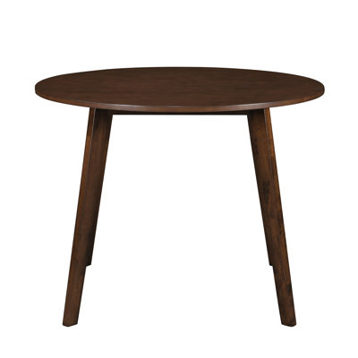 Create an accountThis contemporary dining table brings a simplistic style to your small living room or kitchen. Crafted with a kiln-dried solid wood base, this table has a solid and engineered wood top that seats up to four people, just right for a weekend brunch with friends. It features a clean-lined silhouette with a circular top balanced on four thin, flared legs that give this piece a mid-century touch. We love this table's 39.5'' width makes it ideal for space-conscious rooms. Partial assembly is required.