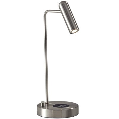Create an accountThis 17-inch silver desk lamp with USB and wireless charging is the perfect combination of design and function. This adjustable head desk lamp, in a brushed silver stainless steel finish, provides stylish and modern task lighting that will illuminate your working area for reading or writing. Integrated led technology is energy efficient and comes complete with a USB port and wireless charging station. The perfect lamp to create just the right natural and soothing light in your space and help keep you charged and connected at the same time. 16.5-inch H x 6-inch W x 8-inch D