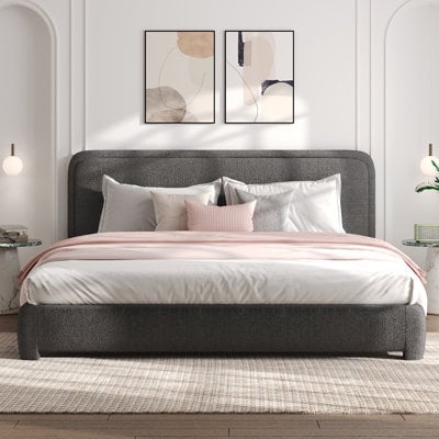 Create an accountElevate your bedroom with this modern upholstered bed frame, featuring a plush boucle fabric headboard for a touch of warmth and timeless elegance. Its soft, rounded design provides a cozy backrest for reading or relaxing, while the low-profile silhouette adds understated style to any space.