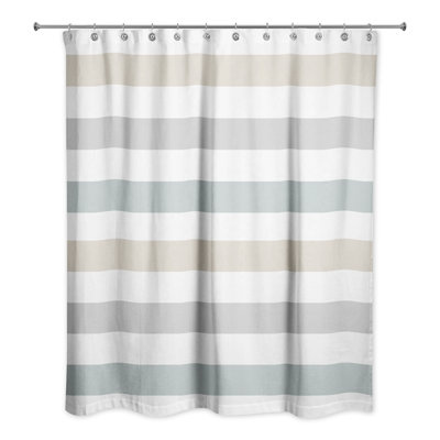 Create an accountThis shower curtain features a horizontal stripe pattern in your choice of color combination that takes your bathroom from bland to beautiful. It is designed and printed in the USA from easy-care polyester and has 12 stitches-reinforced holes ready for the hooks of your choice (sold separately). We recommend that you pick up a water-resistant liner to use with this curtain to protect your floors from getting wet. Best of all, when it needs a quick refresh, this shower curtain is machine washable and dryable.