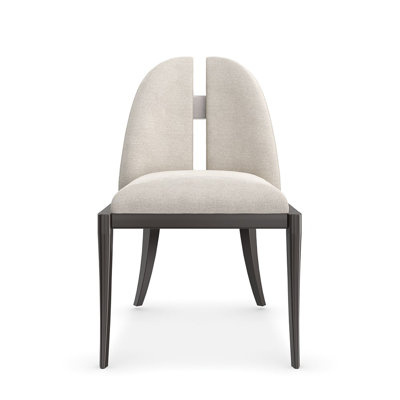 Create an accountA sublime reflection of familiar forms, this dining chair depicts the delicate balance between subtlety and strength. Its delicate silhouette features a softly curved, split back, joined at the middle with a textured metal accent in lightly brushed chrome. Airy and light, with a substantial presence, it offers casual comfort with an air of elegance.