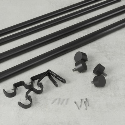 Create an accountEach Cappa curtain rod from Umbra is made of high-quality materials and individually checked for quality assurance. Your Cappa Double Curtain Rod Set conveniently adjusts and gives you the flexibility to accommodate 1 or 2 curtain panel configurations depending on your needs. Cappa supports a variety of window fashions including light to medium-weight curtains with a max weight of 22lbs. (10kg). Plus, everything you need to get it set up fast comes in the box including matching finials, adjustable wall-mounted curtain rod brackets, screws, drywall anchors, and easy-to-follow installation instructions. This adjustable curtain rod works with a variety of décor styles and can be used with grommet, back-tab, rod pocket, and tab-top curtains. Single rod brackets sit 4” (10 cm) from the wall. Double rod brackets sit 6” (15 cm) from the wall. This curtain rod is made with an eco-friendly finish. It produces 85% less water and solid waste than traditional electroplating finishes. *Note: 1" (2.5 cm) diameter rod includes a 3/4" diameter back rod. 1.25" (3.2 cm) diameter rod includes a 1" (2.5 cm) diameter back rod. *36-66 Lengths include 2 brackets – all others include 3 brackets.