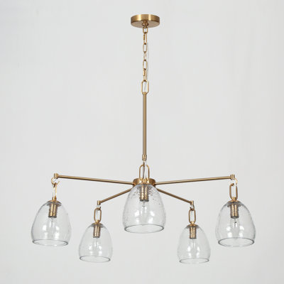 Create an accountElevate your space with the sleek silhouette and clean, modern design of this 5-light dimmable chandelier. Five straight metal arms extend from the downrod to the perimeter, with dome glass shades hanging from the ends for an elegant, classic look. An electroplated gold metal frame mirrors the clear hammered glass shades for a contemporary twist on traditional style. This height-adjustable chandelier can be used as the highlight of a kitchen island, dining room or living room space, exuding glam charm.