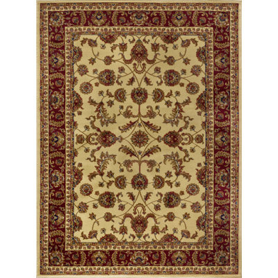 Create an accountThe ornate design of this area rug creates a warm ambiance to any room. Classic colors of red, ivory, and gold set the stage for elegance. Power loom machine made of comfortable polypropylene that is easy to clean and soft. Vacuum and spot clean. It is machine-made in Turkey from 100% polypropylene with 0.39 pile height for lasting quality. This pile height allows it to fit under the door, making it an ideal rug for a bedroom or anywhere else. Suitable for indoor. This area rug would be a good fit for the living room, dining room, bedroom, kitchen, hallway, and entryway. Vacuum on a high pile setting to remove debris taking care to avoid fraying the edges. Spot clean with water, do not bleach. Rotate periodically to extend the life of your investment. The Rectangle 8'9" x 12'3" and Rectangle 10'6" x 14'6" ship folded in a box.