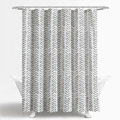 Create an accountMake every morning a relaxing one and decorate your bathroom with the Hygge Modern Arrow Linen-Textured Shower Curtain. Rows of arrows line the linen-textured fabric in neutral hues. With its simple and modern design, these shower curtains for bathroom are perfect for adding a calming hygge touch to your bathroom decor. Measuring 72 inches wide by 72 inches long and crafted from a linen-textured cotton blend fabric. Pair this fabric shower curtain with a liner, sold separately. Easy Installation with 12 button holes at the top. Machine wash and tumble dry.