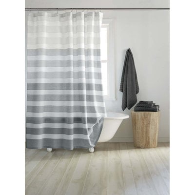 Create an accountRefresh your shower with a bold and timeless pattern featured on the DKNY Highline stripe shower curtain. This bathroom essential has wide horizontal stripes and an alternating rib stripe detail to add a touch of style to your space. In white and taupe, this shower curtain will add a splash of color to your bathroom with its ombre pattern.
