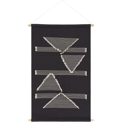 Create an accountThis understated Cotton Wall Hanging with Rod Included lets you add a touch of personality to any room in your home while pulling your decor together. It displays a stitched cotton geometric pattern, reminiscent of music notes, in black and ivory hues. Like a scrolled sign, it features a wooden rod on both ends that make it easy to hang in the living room, bedroom, or den. It includes wall-hanging accessories that make installation a breeze.