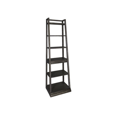 Create an accountReflect your personality in any room with this clean-lined bookcase. Crafted from wood, this piece sports a neutral brown finish with wood scoring and rub-through for a warm and weathered look. Showcasing a ladder silhouette, this on-trend design features an open frame with six shelves, so you can show off framed photos, your favorite novels, and artful accents of all sizes.