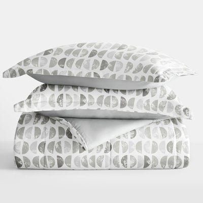 Create an accountAnchor your bedroom in contemporary style with this reversible bedding set. This microfiber set is made from 100% polyester in a muslin weave, and it comes with a comforter and two pillow shams (one for the twin size). One side boasts a solid gray hue, and the other features a pattern of small half-circles over a white background. We love that this wrinkle-resistant set is moisture-wicking, so it's great for warm sleepers. Best of all, it's machine-washable.