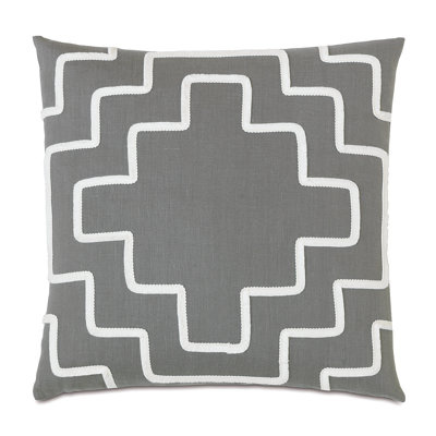 Create an accountDowney radiates confidence in strong stripes and fashionable ikat prints. This decorative pillow is crafted from 100% linen featuring a brush fringe applique. Finished with a knife edge. Cool slate and gold hues give Downey a trendy urban attitude with a flair for global influence.