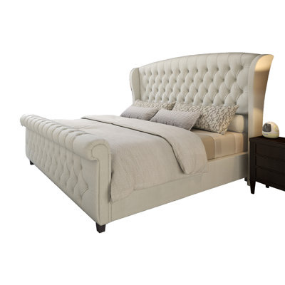 Create an accountThis low-profile sleigh bed transform your bedroom into a luxurious sleep space. The elegantly curved headboard is upholstered in rich chenille fabric, and it showcases deep diamond-shaped button tufting, giving your space a sophisticated look. Made from engineered wood, this bed frame has 12 wooden slats and center support legs for a stable foundation – no box spring is needed. The foam-filled headboard offers an inviting place to lean back and enjoy a good book or your favorite TV show. Plus, the fully upholstered design and finished back make it a versatile addition to any glam or French country décor.