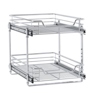 Create an accountThis innovative organizer offers two tiers of ample storage space, allowing efficient access a wide range of items, from cans and dry goods to cleaning essentials. Featuring a unique dual-sliding design, this organizer is equipped with both a top and base sliding drawer. The design provides convenient access to stored items from both sides, ensuring efficient organization and easy retrieval. Crafted from durable steel, this organizer is built to last. The durable powder paint coating enhances its longevity and provides resistance against scratches and corrosion. Designed to be compatible with most standard kitchen cabinetry, this organizer is perfect for maximizing storage in the kitchen. With a maximum weight capacity of 33 pounds, this organizer is built to handle heavy loads while maintaining stability. Installing it is a simple process, as all the necessary mounting hardware is included. Follow the provided instructions, and the organizer will be ready for use in no time. To further enhance functionality, the organizer comes with removable PEVA liners. The liners act as protective barriers, guarding against leaks and spills, while also making it easy to clean and maintain.