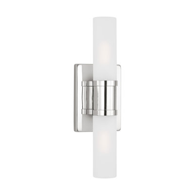 Create an accountDrawing on mid-century designs with a sleek, luxe twist, this 2-light vanity fixture brightens up a wall with an updated look. Crafted from stainless steel, this piece features a clean-lined rectangular backplate and a cylindrical fitting. Matching opal matte glass shades diffuse the light of the two 40W (not included) bulbs evenly throughout your space. This fixture features reversible lighting and is rated for damp spaces, so it can easily be used in a bathroom or anywhere it's exposed to indirect moisture. Plus, it's dimmable to get the lighting you want.