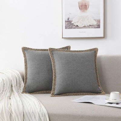 Farmhouse Trimmed Burlap Linen Polyester Pillow Cover