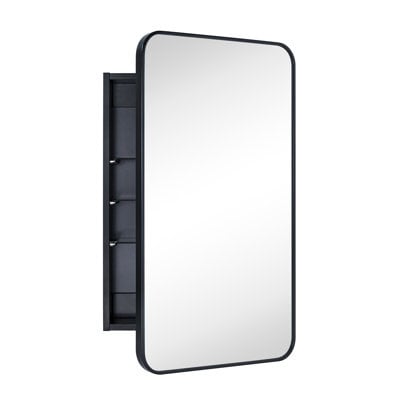 Create an accountThis medicine cabinet brings essential organization to your bathroom with a sleek, modern look. Its frame is made from rust-resistant metal, and it features a rounded rectangular silhouette that softens your decor. This piece includes two adjustable glass shelves behind a mirrored door, providing ample space for toiletries and daily essentials. It comes in several finishes to choose from to match your existing fixtures. We also love how the reversible door handing allows for flexible placement in your space.
