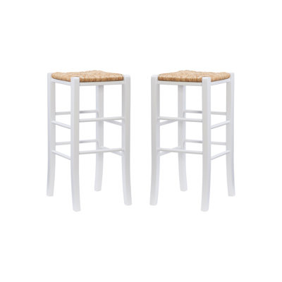 Create an accountThis 2-piece set of dining stools rounds out your kitchen counter or home bar with a relaxed, farmhouse-inspired style. They’re made from solid kiln-dried beechwood, and their bases are intersected by rungs that double as footrests. The square seats of these stools are made from rush rattan, handwoven into a wicker weave that adds a rustic textural touch. We love that their backless design makes it easy to tuck them under the stool when they’re not in use.