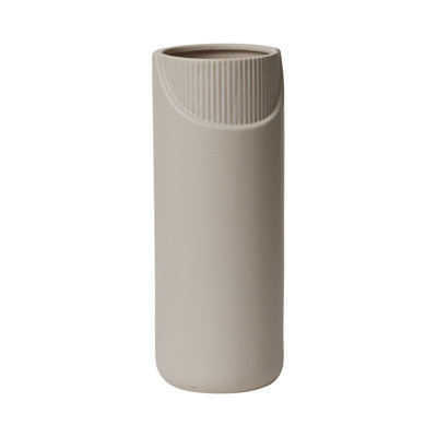 Create an accountSculpt + shape. This modern table vase is crafted from ceramic with a clean, drum-like silhouette. An inset U-shaped decoration shows off subtle reeding for a textured element, while a hand-painted matte glaze gives it a neutral hue. And since it's watertight, you can rely on it to keep flowers fresh and blooming without leaks. Set it on your favorite end table or mantelpiece as an accent or catch-all container if you need extra storage.