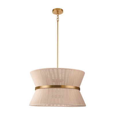 Create an accountThis glam 8-light chandelier brings oversized, elegant lighting to your dining room or foyer. Its generous size features a large 24'' flared drum shade with a geometric, hourglass silhouette that creates a striking focal point in your space. Crafted from iron, this fixture boasts two tiers of lights that cast a warm glow both upward and downward, perfect for setting the mood. It's compatible with sloped ceilings, and the adjustable downrod lets you customize the height to suit your space. Plus, it's dimmable, so you can easily control the ambiance. Just add eight B10 candle bulbs (sold separately) for a brilliant shine.