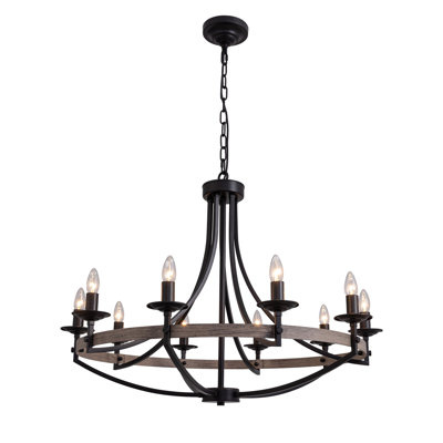 Create an accountThis 10 lights candlestick chandelier can bring lighting effects and decoration to any area. The medium-sized chandelier with a total width of 35" is made of metal. The basic color of matte black spray paint and dark walnut makes it more unique. Body is suspended by a hanging chain, which can be adjusted to adapt to any height of the ceiling. The wheel-shaped frame is very suitable for country or retro decoration styles. This chandelier's built-in adjustable brightness and color temperature function makes it perfectly meet all customer requirements and is very suitable for hanging in living rooms, corridors, etc.