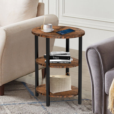 Create an accountAdd a touch of rustic charm to your living space with this versatile side table. Its 3-tier shelf provides ample storage and organization for your belongings, while its stylish wood design adds a mid-century modern flair to any room. Whether used as an end table, a side table, or a plant stand, this piece brings both personality and functionality to your home.