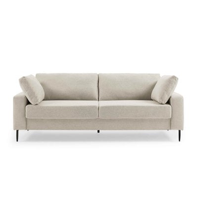 Create an accountThis modern mid‑century sofa offers polished style and comfortable seating with a streamlined silhouette that anchors any living space. Featuring a solid wood frame on slender black metal legs, it supports up to 700 lb with sturdy precision. The square arms and tailored stitch detailing give it a refined, architectural edge, while the firm yet softening cushions with coil‑spring support ensure both structure and relaxation over time. Includes two toss pillows for added coziness and visual balance. We love that it blends Hollywood‑glam details with durable, everyday comfort and timeless appeal.
