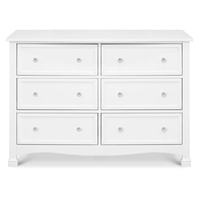 Create an accountThe Kalani 6-drawer Dresser is the smart changing and storage solution for the classic Kalani and Fiona nursery collections. Six spacious drawers provide ample storage to organize all of the baby’s necessities, while its thoughtful design ensures a style fit for any nursery or bedroom. The Kalani Double Dresser is detailed with recessed front drawer panels, a gently curved apron front, and curved top sides.