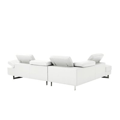 Create an accountThis sectional represents a confluence of style and function. Sporting clear lines, tufted seating, adjustable armrests, and headrests wrapped in premium thick leather, the item will sure to be a great addition to any living room for years to come. The genuine leather portion consists of all the high touch areas - seating area, backrest, armrest, and headrest. The faux leather areas are the frame areas that generally have low touch - the outside arm, bottom trim, and rear side of the sectional.