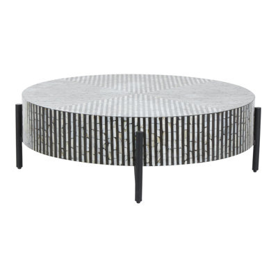 Create an accountDynamic in all the right ways, this round coffee table shows off bold vintage boho flair to your living room. It features an upper section that's made from mother of pearl with a geometric mosaic inlay, creating an intriguing pattern and a multihued color palette. This piece is held aloft by a sleek black iron base for a modern touch. And with a diameter just over 38", it's a great platform for magazines, decor, or remote trays.