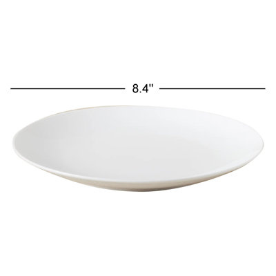 Timeless style for everyday use. This 4-piece set of salad plates refreshes your tablescape at both special gatherings and family dinners. Crafted from porcelain with a classic white glaze, each plate shows off a sleek, crisp shape with slightly curved sides to capture your salad, hors d'oeuvres, or pastries. We love that they're sized just right to sit in the middle of larger plates when you go all out on the table spread. These plates are BPA-free and dishwasher-safe, making them a versatile and stylish addition to your dishware collection.