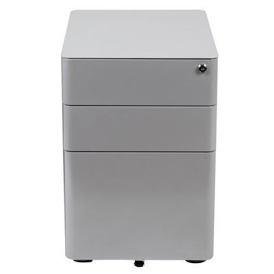 Create an accountYou may love your current desk but have nowhere to store your paperwork without cluttering the desktop, insert this locking file cabinet to keep the minimalistic appearance of your modern office desk. This 3-drawer pedestal file cabinet has low-set casters to keep up with the needs of a busy worker. The convenience of casters is ideal for employees who regularly file documents, allowing them the option to pull the cabinet near them while monitoring incoming emails. The modern 3-drawer mobile file cabinet has two utility drawers to hold your small office supplies, snacks, vitamins, and writing utensils while the hanging file drawer holds letter, legal, A4, and F4 hanging folders. Folder longer documents such as your legal size paperwork vertically using the conversion bar. An included pencil tray keeps your small supplies neatly stored and can be used in either of the two utility drawers. Two keys are included to keep in separate locations or as a duplicate for your assistant. Smooth-surfaced drawers offer clean sightlines and provide a worry-free solution to loosening handle screws over time. Easily open the drawers with the hidden side handles. Organize your office space with this mobile under-desk filing cabinet that comes fully assembled and ready to use. This ergonomic filing cabinet is a smart solution for any workplace whether used for heavy-duty daily filing or the casual user.