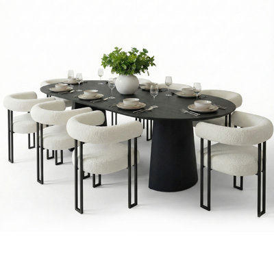 Create an accountThis 2-piece set of armchairs has mid-century modern written all over it. The wooden frame rests on four flared, tapered dowel legs made from metal with a sleek black finish. We love that the back, seat, and arms are wrapped in textured polyester and filled with foam to provide ample support as you sit around for dinner or dessert. Plus, the vertical channel tufting and welt-cord details add the finishing touches. Pick up a pair or multiple for a cohesive dining room.