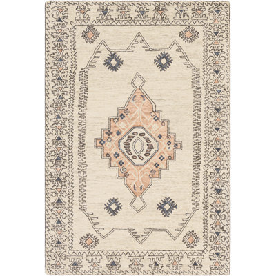 Create an accountRoll out organic pattern. This area rug showcases an artfully imperfect central medallion + geometric borders that draw on Southwestern textile motifs, in warm desert-like hues. It’s hand-tufted from wool, with a medium pile height that delivers the right mix of cushion and durability.