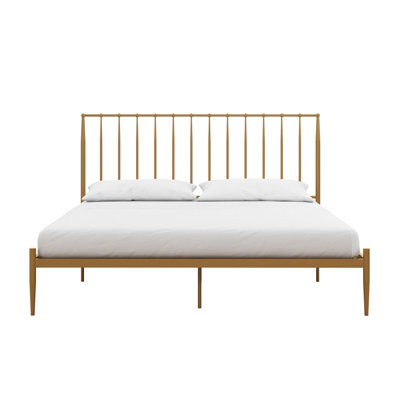 Create an accountLavish, chic, and simply styled the Novogratz modern metal bed is just what your bedroom has been missing. Available in multiple colors and sizes, this bed has a beautiful headboard with round finials that will perfectly balance the design of your room. The metal bed is constructed with a strong metal base that includes side metal rails as well as extra center metal legs to ensure stability and durability. In addition, it includes secured metal slats to ensure mattress support and breathability. Thanks to the slats, the metal platform frame removes the need to purchase any additional foundation or box spring. A special feature of Nicole is its under-bed clearance. You get 11 inches of storage space under your bed that can be used for storing seasonal clothing, accessories, and books. Ideal for your master bedroom, your child’s bedroom, or a guest bedroom. Ships in one easy-to-handle box.