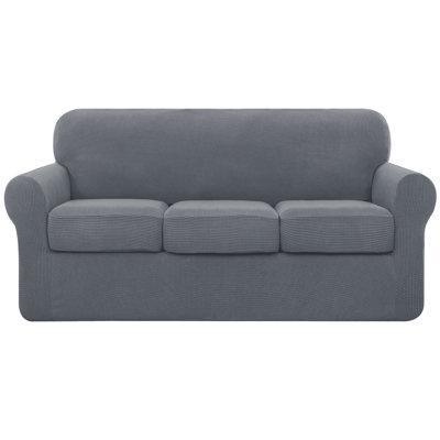 Create an accountGive your sofa a catalog-worthy makeover with this unique 4-piece individual seat design slipcover. The stretchy fabric and elastic band design creates a clean and slip-resistant look. In a slightly raised grid pattern, the subtle geometric design is designed to minimize tucking, fits the various-sized sofa, and adds cozy texture. The 4-piece sofa slipcovers consist of 4 parts, one is a base slipcover and the rest are 3 cushion slipcovers. Designed for easy installation and removal, this slipcover is effortless to install on and off with instructional tags to guide you through the whole installation process seamlessly. Besides, this slipcover is machine washable, has low-temperature drying, and is friendly for pets and children. Give an update to tired furniture and stay on budget with this slipcover. We offer 10 colors for these sofa covers washable to easily match your home style, including: Ivory, Navy, Gray, Blue, Sand, Dark Brown, Black, Wine Red, Denim Blue, and Light Gray. Please note that slight color variations may occur due to different screen displays. Please refer to the actual product."