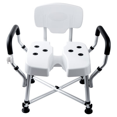 Create an accountExperience the pride and innovation in bathroom safety with our tub and shower chair. This hygienic bathing aid, designed for the elderly, disabled, pregnant women, and those with limited mobility, showcases a patented cutout design. The 18-inch-wide non-slip bath seat with drainage holes offers comfortable personal hygiene, reducing pressure. With a maximum load capacity of 400 pounds, it's both functional and robust. Safety features include an armrest with a clip to hold a detachable handheld shower head. Some assembly is required, ensuring easy, comfortable cleaning with our proud and innovative design.