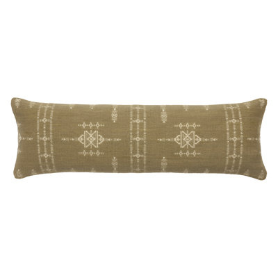 Create an accountReminiscent of traditional sabra textiles, this lumbar pillow boasts a playful olive-green hue with ornate, cream-colored tribal detailing. The woven cotton front offers a textural, vintage-inspired addition to beds or sofas.