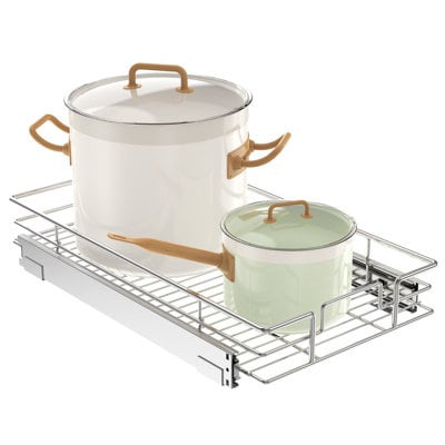 Create an accountSpace-saving Pull cabinet organizer. This slide-out cabinet organizer can maximize your cabinet space. Makes it super easy to store, organize, and access your stand mixers, pots, pans, baking sheets, other kitchen accessories, cleaning supplies, and various odds and ends. Now your cabinet is no longer just stacks of pots and pans. Upgrade your storage setup with our robust wood grain metal organizer, tailored for holding hardware tools. This 2-tier rust-resistant unit is perfect for kitchens, pantries, or workshops, ensuring tools are accessible and neatly arranged.
