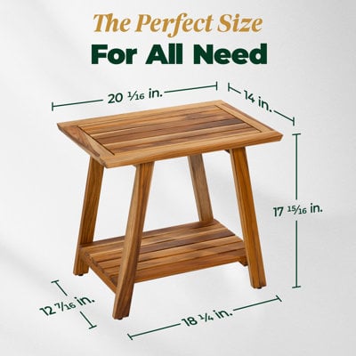 The 2-tiered wooden shower shelf can serve as bothteak shower organizer and a shower foot rest for shaving legs. With a sleek and compact design, our double layer bathroom storage fits seamlessly into any corner. The rich, warm tones of the teak shower shelf add a touch of elegance to the entire room, creating a serene and spa like ambiance.
