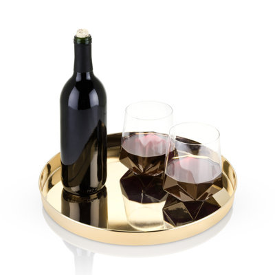 Create an accountMake entertaining a stunning experience. This contemporary tray features burnished gold plating and a smooth circular rim, optimal for serving a round of your favorite beverage.