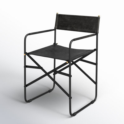 Create an accountThis 18'' armchair draws on icons like camp furniture and director's chairs to give you a seat with a pared-down look and folding convenience. It's made with a metal frame, and has a sling seat and back made from genuine leather. The frame has plenty of crossbar accents along the front, back, and sides, that both add to this chair's retro look and help it fold up when it's not in use. Snap it open and have a seat as soon as it arrives.