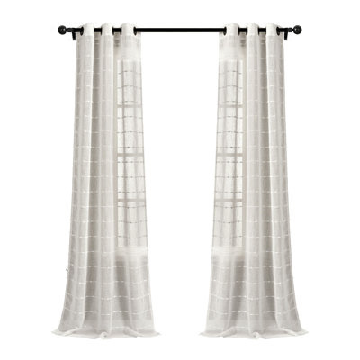 Create an accountThis Farmhouse Textured Back Tab/Rod Pocket Sheer Window Panel brings a touch of modern farmhouse charm to your home. The sheer fabric is woven with tufted stripes, adding soft dimension that complements cottage, coastal, and rustic decor styles. Its airy, sheer design allows maximum sunlight to brighten your space while still providing some privacy. The panel is crafted from 100% polyester. STANDARD 100 by OEKO-TEX® certified. Each panel features a 3" back tab rod pocket for easy installation with a standard curtain rod or clip rings (not included). Hand wash only.