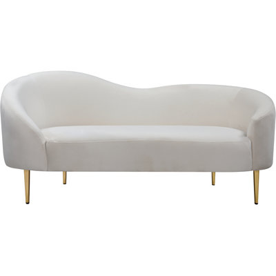 Create an accountGet comfy while remaining chic in this elegant Ritz velvet loveseat. Plush upholstery provides a soft texture that is pleasing to the senses, while its curved design offers a contemporary touch to your home furnishing. Metal legs complement the loveseat's sophisticated color, creating a gallant piece anyone would be proud to display in their home.